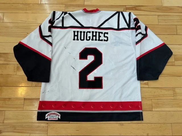 I never set foot in the old rink and didn’t know anything about ice hockey until the Dundee Ice Arena was built in 2000. At that time I started hearing about the Dundee Rockets and Dundee Tigers teams and players like Roch Bois, Roy Halpin, Chris Brinster, Joe Guilcher… (it’s a long list!) I never saw these teams or players on the ice but did watch the newly formed Dundee Stars from their first season in 2001/02 until I emigrated during the 2010/11 season. It is my hope that by displaying this collection of hockey jerseys and cards, they can serve as a reminder of the players I watched in this era of Dundee hockey history.