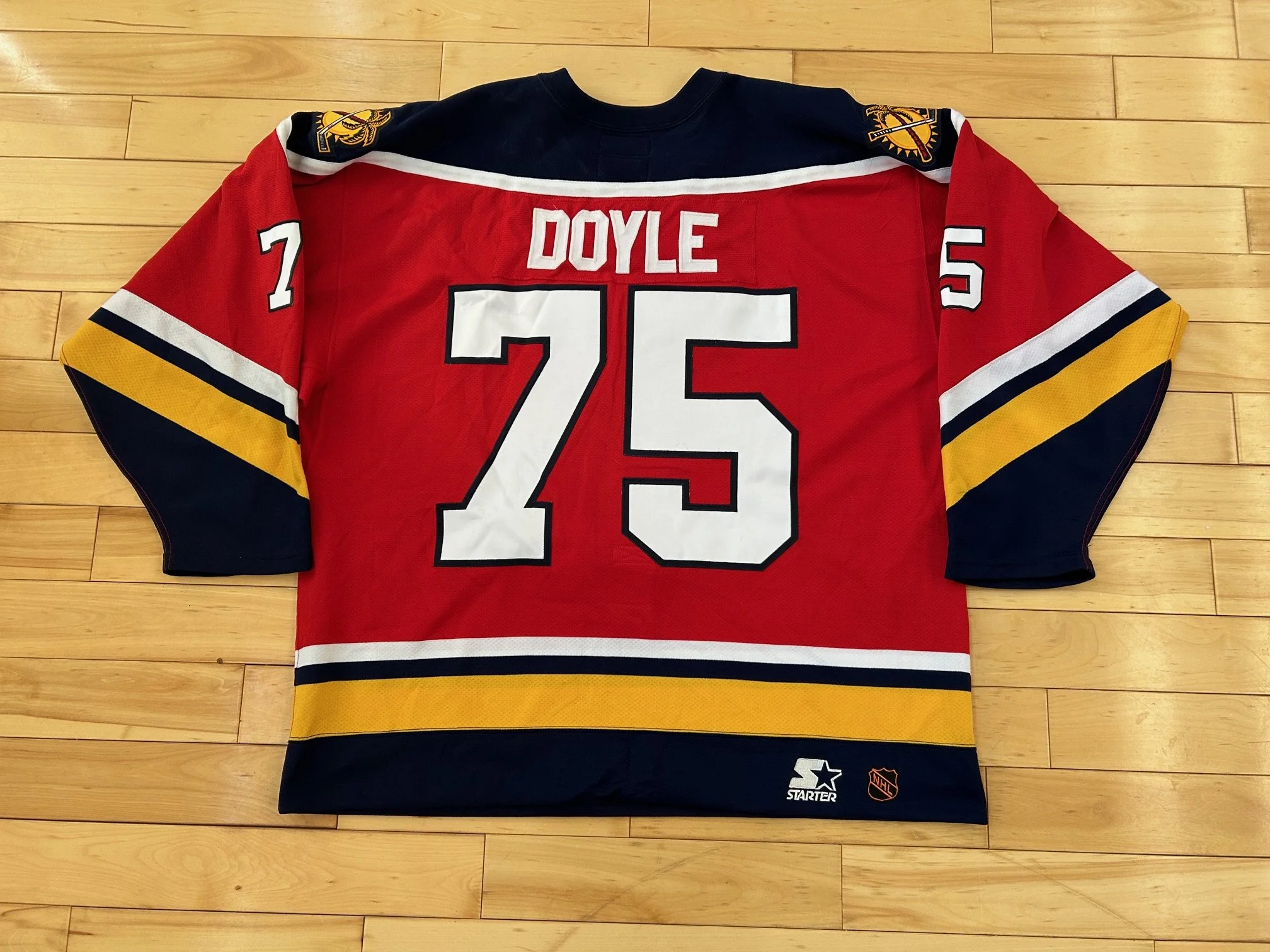 Trevor Doyle Game Worn Away Jersey 1996-97 Carolina Monarchs US Minor Cards Game Issue Away Jersey 1996-97 Florida Panthers NHL Game Worn Home Jersey 2001/02 Dundee Stars BNL